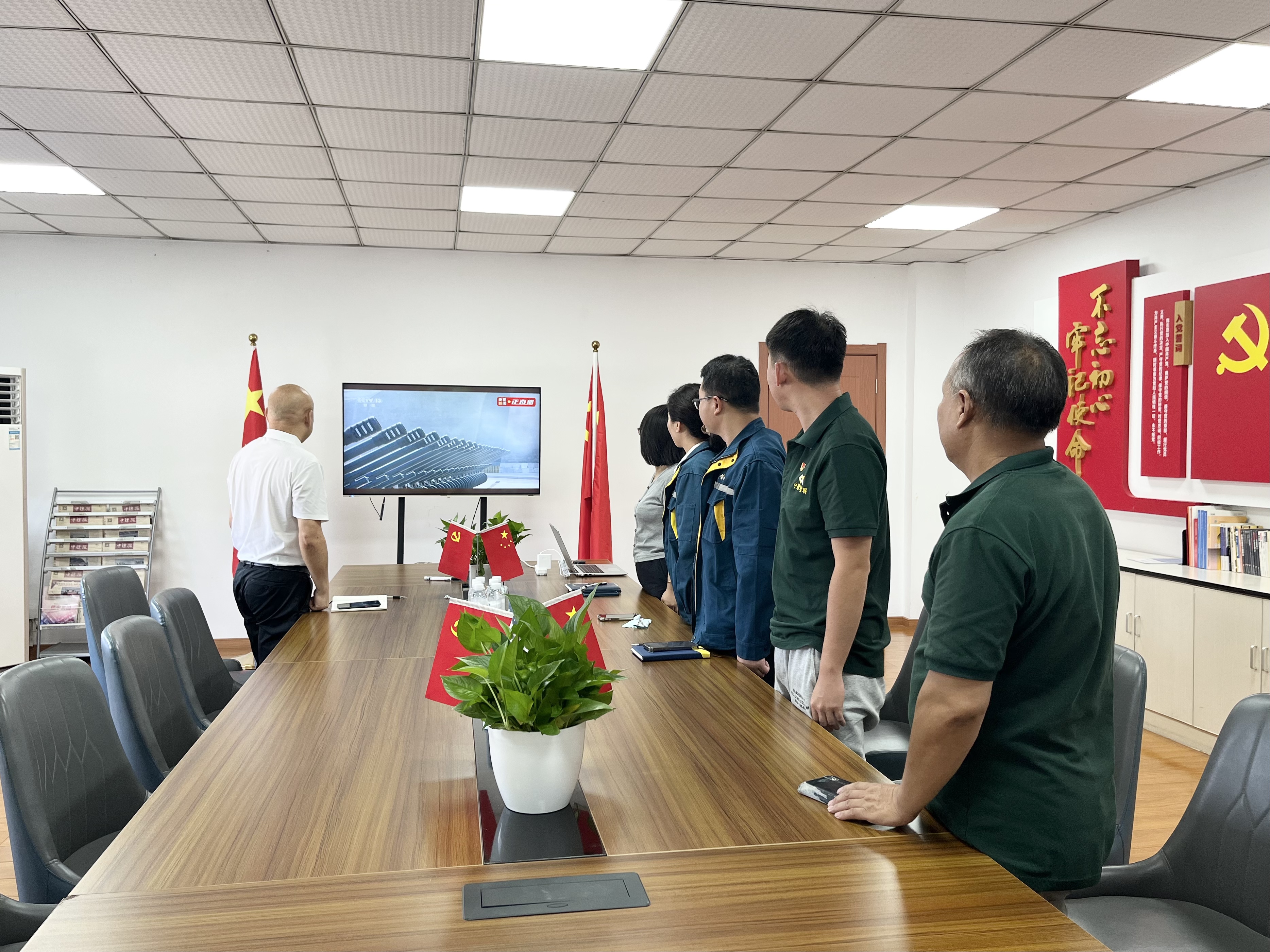 为纪念中国人民抗日战争暨世界反法西斯战争胜利80周年,中镖集团新银豪党支部于9月3日组织公司党员以及退伍军人在党建办公室集中观看北京天安门广场阅兵直播,共同见证这一伟大的历史时刻。