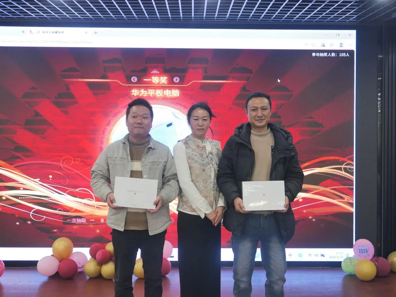 盛会添喜,好运相伴!为答谢全体同仁的辛勤付出,感谢各位供应商嘉宾的一路支持,本次年会特设多轮幸运抽奖环节,丰厚实用的惊喜大奖轮番送出,涵盖数码好物、定制礼品、专属福利等。每一次抽奖都伴随着阵阵欢呼,每一份奖品都承载着中镖科技的满满诚意与美好祝福,幸运降临的瞬间,不仅有惊喜与欢喜,更有并肩同行的温情与暖意,让这场盛会更具温度、更有记忆点。